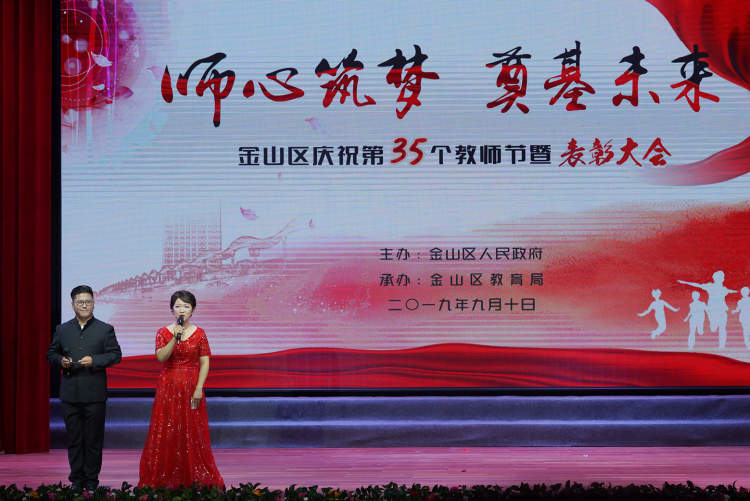 日前,金山区庆祝第35个教师节暨表彰大会隆重举行, 大会对全国模范教师、市园丁奖、区师德标兵、区园丁奖、区十佳班主任、金山区教育系统金爱心奖进行了表彰。大会以情景剧、微电影等不同方式展现了金山教育工作者扎根杏坛、辛勤耕耘、潜心育人的精神。