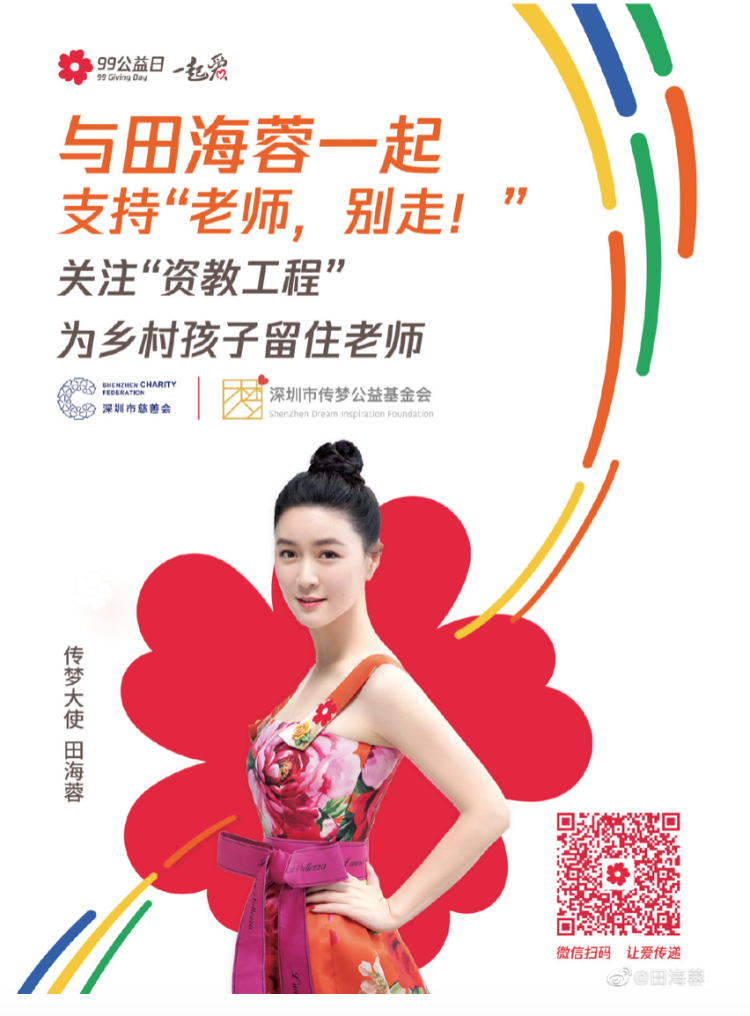为爱发声,为乡村孩子留住老师尽自己的努力,给乡村孩子一个充满知识的课堂和梦想。据不完全统计,目前田海蓉与粉丝已为项目筹款近万元。