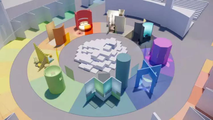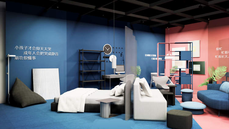 其实这是由中国美术学院色彩研究所所长宋建明教授策展,杭州北斗星色彩研究有限公司设计出的9个沟通空间。人与人,人与物的沟通可视化应该长什么样?比如在你不玩智能手机和电脑的时候,你会做些什么呢?除了吃饭、睡觉,作为社会人的我们都是在与外界沟通的,比如和父母、恋人、朋友、同事、宠物、陌生人,还有我们自己,每一种沟通行为的发生,心情也会随之变化,可以用不同颜色来代表。