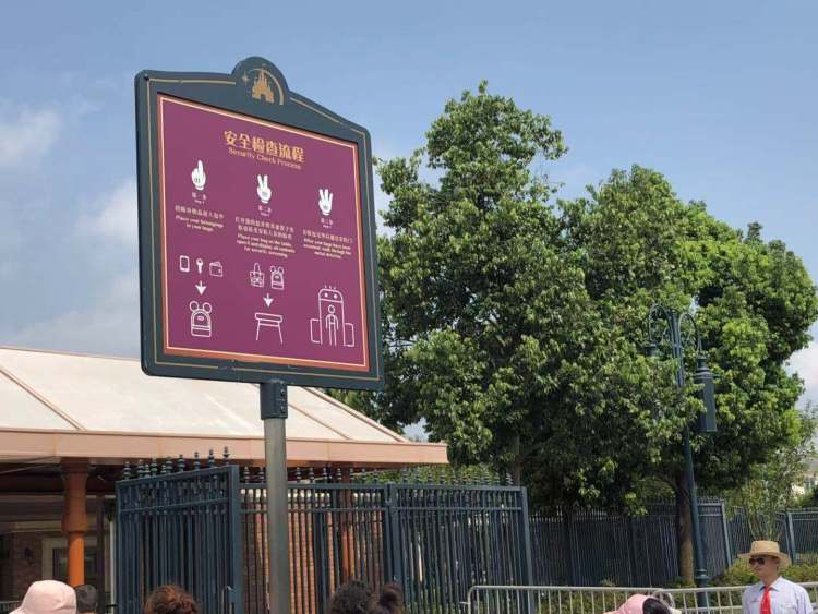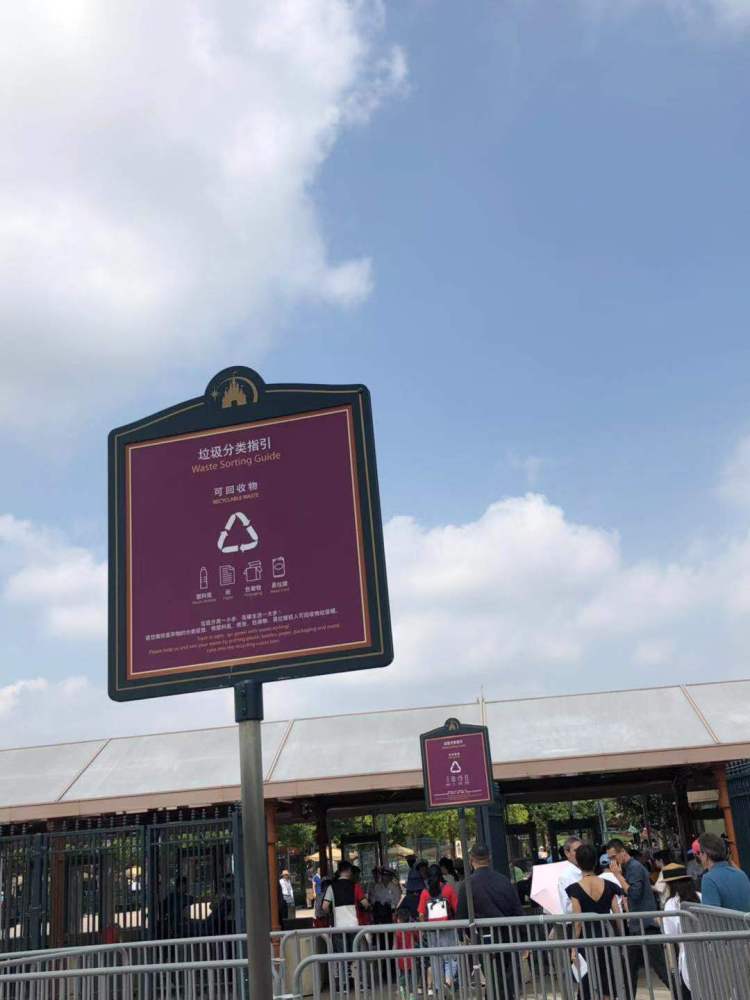 从乐园安检蛇形通道入口处开始,周到君注意到,增加了几块新的标识,告知游客迪士尼的安检流程。除了安检流程的告示,还有垃圾分类的提醒。与此同时,广播的语音播报里,也新增了关于食品和安检新规定的提醒。