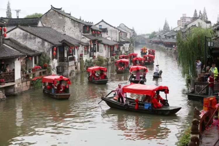 据介绍,今年的第十五届水乡婚典主题为“印象长三角·情定枫泾缘”,时间为9月21日。本届婚典在各方面都融入了浓浓的“长三角”元素,通过借鉴传统,融合现代,将婚礼与文化旅游紧密连接,凸显区域联盟互动,同时进一步助力长三角一体化蓬勃发展。