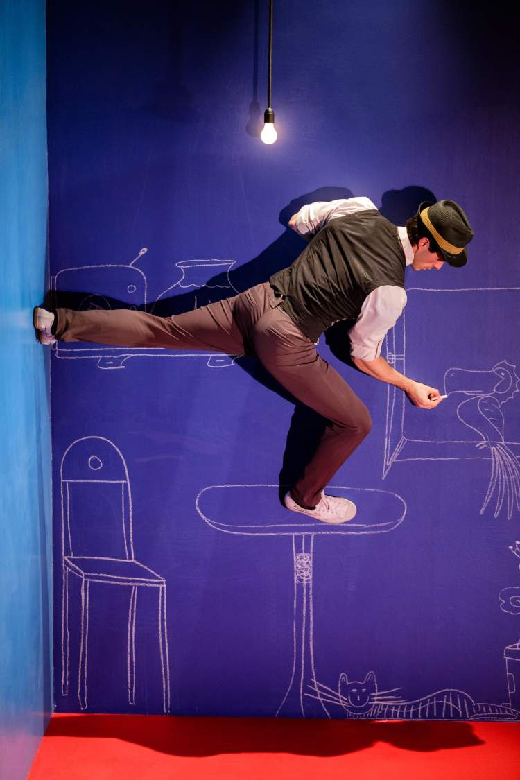 《反转地心引力》是一个令你思维转折、有趣的、超越现实的、令人惊讶的感人作品,不仅挑战感官,也通过对现场表演和视频投影进行巧妙的实验与互动,为观众带来真实的穿越感。《反转地心引力》几乎让观众忘了哪个方向是上,哪个方向是下。