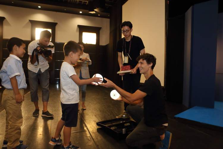 演出开始前,来自儿童医学中心的孩子与主演朱利安·舒尔茨见面并送上纪念礼物,之后朱利安更用剧中的“魔法”向孩子们“回赠”惊喜。(这部戏有多赞?点这里👇)