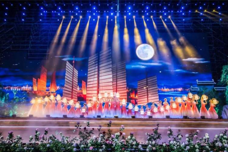 据悉,今年央视中秋晚会的主会场设在古淮河与京杭大运河交汇处的大运河文化公园内,结合实景山水的舞台设计,完美展现了月光如水水如天的浪漫意境。