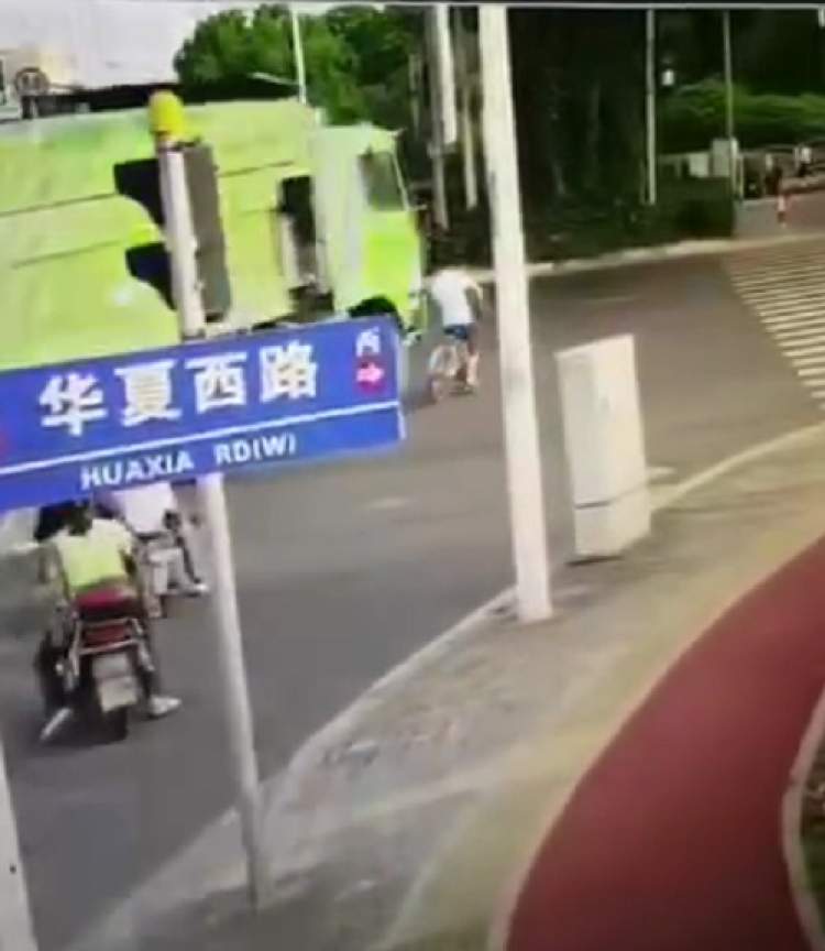 一位目击者表示,当时这名50来岁的男子骑自行车沿浦三路由北向南,正准备通过华夏西路。此时,一辆牌号沪D的重型自卸货车刚好沿浦三路北向西右转弯,撞倒这名男子后将其碾压身亡。