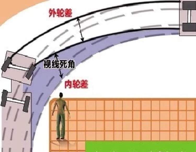 因为只要是机动车辆,在转弯时就都会有内轮差。对行人而言,车辆的轮差会让站在车道上的行人,发生被车辆后轮压过脚面的交通事故。