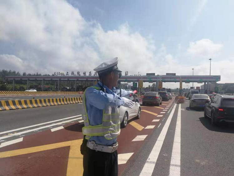 ▲现场视频:高东收费口车辆排队缓行,交警在指挥交通
