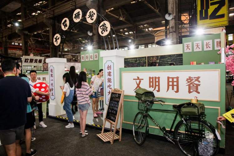 这还只是淘宝造物节的入口,进入会场,国内首秀的人造肉狮子头在等着观众。更深入一层,正是专门的美食区。这里汇聚了来自全国各地的45家创意美食,供观众大饱口福。
