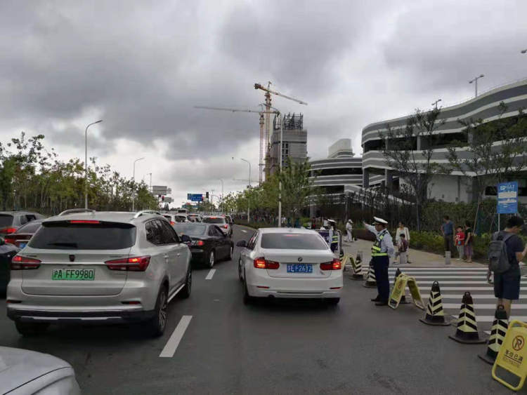 据了解,上午9点,距离海昌公园正门最近的海洋公园停车场的1600个车位就已经全满,后续车辆被陆续引导至周边雪绒花路、临港大道P+R两个停车场的2200余个车位上,上述两个停车场将增派公交车频次,对乘客进行短驳。