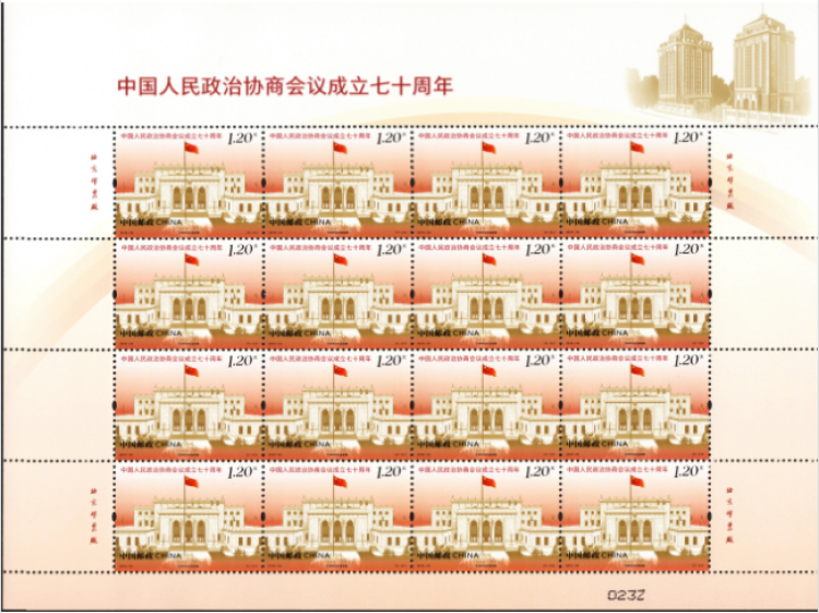 人民政协七十周年,30×40毫米,面值1.20元,见下图。