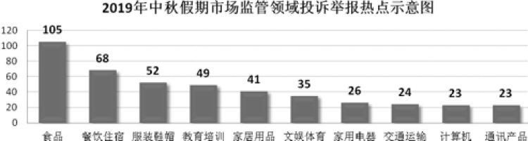 2019年中秋假期,上海市市场监管系统投诉举报热线共接到投诉举报813件(投诉724件、举报89件),同比增长3%,解答咨询450件。其中,食品(105件)、餐饮住宿(68件)、服装鞋帽(52件)、教育培训(49件)、家居用品(41件)、文娱体育(35件)等诉求量居前。