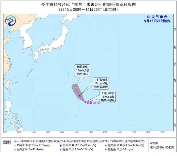 今年第16号台风“琵琶”昨晚生成 周到君 2019-9-16 来源:周到上海 中央气象台发布,今年第16号台风“琵琶”(热带风暴级)(英文名称:PEIPAH;名字来源:中国澳门;名字意义:一种在澳门受欢迎的宠物鱼)已于昨晚在关岛东北方的西北太平洋洋面上生成,20:00其中心位于关岛东北方约590公里的洋面上,中心附近最大风力有8级(18米/秒)。 预计,“琵琶”将以每小时25-30公里的速度向西北方向移动,强度变化不大。“琵琶”未来对我国海区无影响。 来源:周到上海 作者:周到君 赞一个 (0)