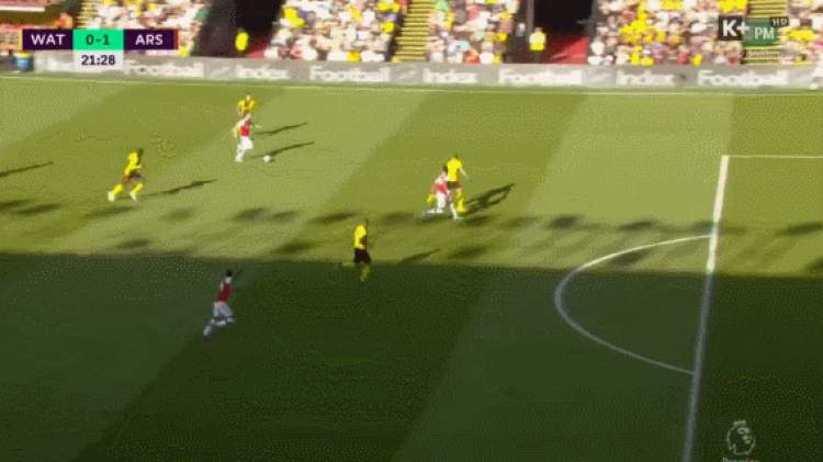 第21分钟,科拉希纳茨左路传中,奥巴梅扬禁区内停球顺势转身抽射破门,阿森纳1-0领先沃特福德。