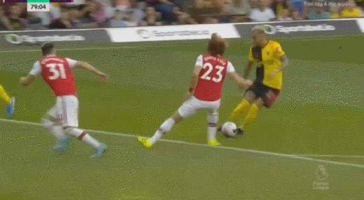 第79分钟,大卫-路易斯禁区内侵犯佩雷拉,主裁判判罚了点球。随后佩雷拉亲自操刀主罚命中,沃特福德2-2逼平阿森纳。