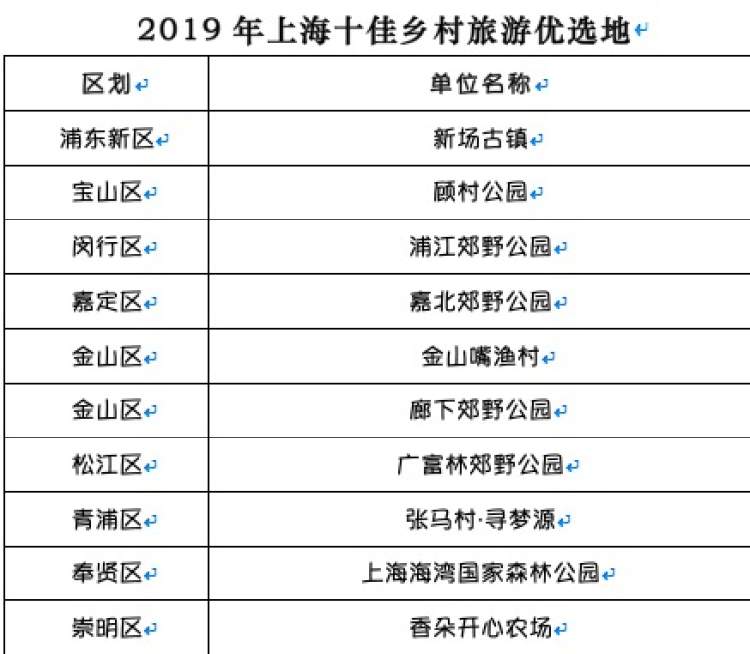 与此同时,市文化旅游局又从2019年上半年发布的79家《2019年上海市民“休闲好去处”名录》中,根据休闲好去处的四大维度评分,好中选好、优中选优,最终遴选出2019年上海十佳乡村旅游优选地。通过上海乡村旅游优选地和上海市民休闲好去处的发布,推出了一批有品质、有文化、有生态、有服务的休闲旅游资源,引导市民游客更好地游览上海、了解上海,使旅游惠及广大市民游客,不断提升获得感和幸福感。