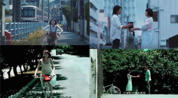 骑单车的镜头、男女主角面对面的镜头,致敬的是《晴天》MV。