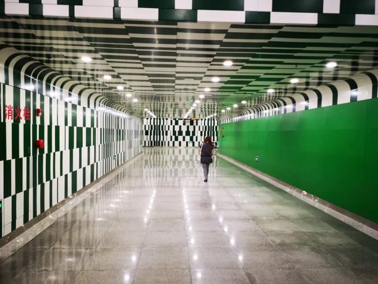 至此,该地道的打通标志着虹桥商圈从虹桥天都至友谊商城以“春、夏、秋、冬”四季为装饰主题的四条人行地道已全部建成啦!