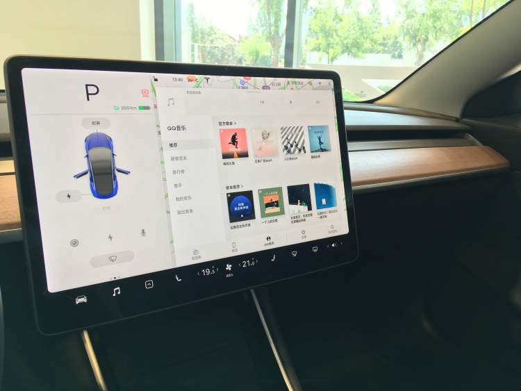 首先,Model 3 用一张卡片取代了车钥匙,我像刷酒店房门一样打开车门,有些心虚的坐进了驾驶位。在我面前的,是一张平整的木纹台面,居中摆着一台电脑,我的兴趣一下子去了一半,这感觉就像坐回了我的办公桌!