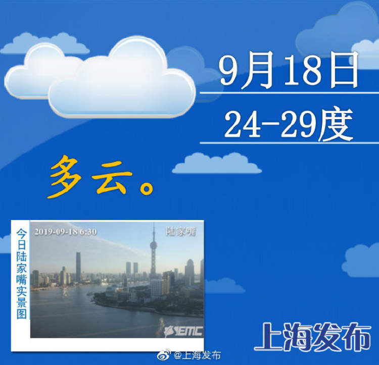 明天最高温降2度,后起两天有雨,周日最高26度 周到君 2019-9-18 来源:周到上海 本市今天多云,蓝天白云下清爽的东北风带来了早晚舒适的体感,不过中午前后还是会有点热。明天魔都将继续维持多云天,最高温度降2度,为27度。预计周五、周六两天有雨水光顾,周日阴天,最高温度26度。 来源:周到上海 作者:周到君 赞一个 (0)