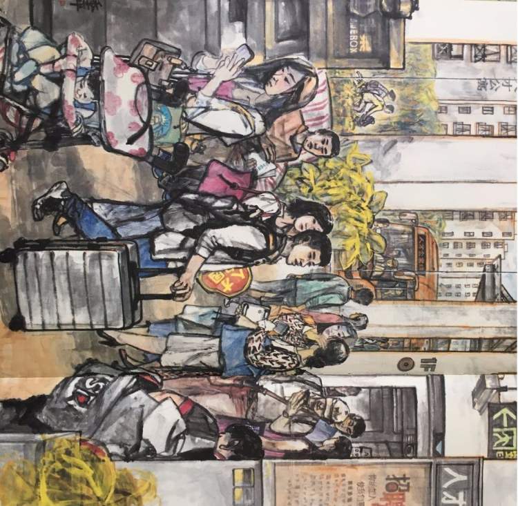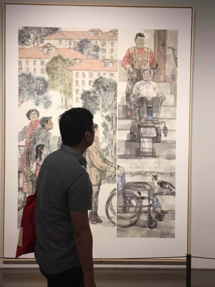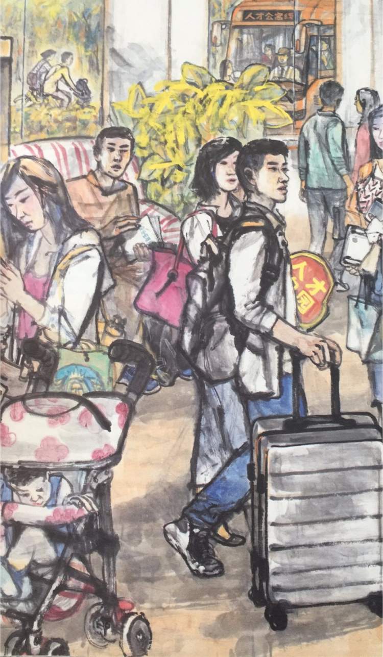 几易其稿后,《吾心安处是我家》终于完成,作品描绘了高科技园区的人才公寓一景:公寓专线、共享单车、年轻白领、溜娃妈妈、快递员等等,熙熙攘攘、一派朝气,却又无处不渗透着让人熟悉的“家”的感觉。通过画家的努力和评委的不断指导,终于成就了一幅以独特视角表现都市生活中外来人口的生存状态和年轻人的事业、理想和追求的动人画作。