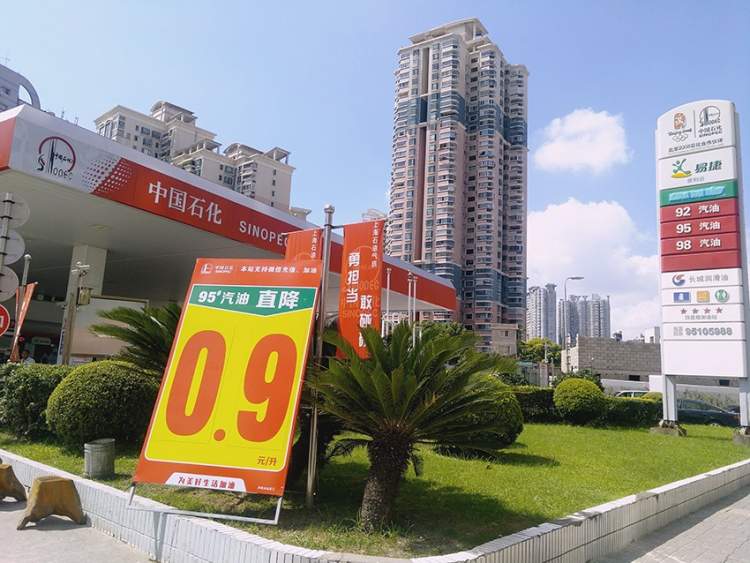 然而,昨天小编路过高阳路近周家嘴路口时,远远看见一家中国石化加油站竖着一块硕大的招牌,“95#汽油直降0.9元/升”。