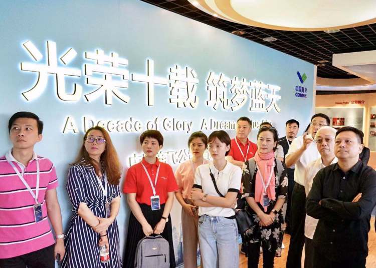 此次主题实践活动中,艺术家们从中国商飞“起航”。今天一早,艺术家吹响集结号,共同走进具有全球影响力的科技创新中心核心载体和先行先试区域——上海张江高新区,在飞机设计院、研发中心、工厂车间、科技展厅、创新平台等,近距离接触C919大飞机。