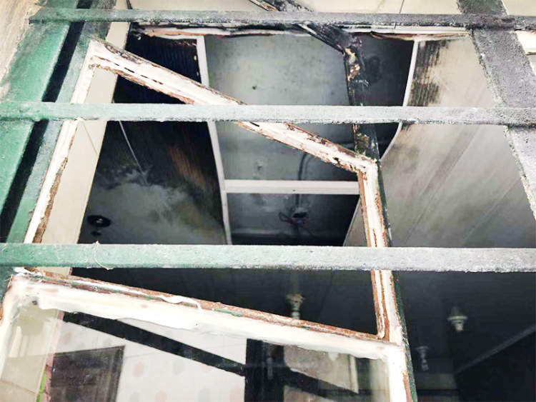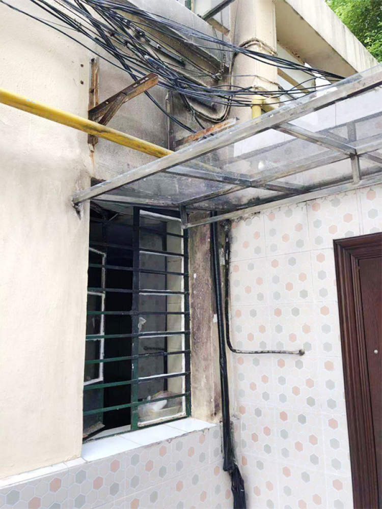■起火时因有遮阳板阻挡,火势没有向上蔓延而是窜入了一楼灶头间