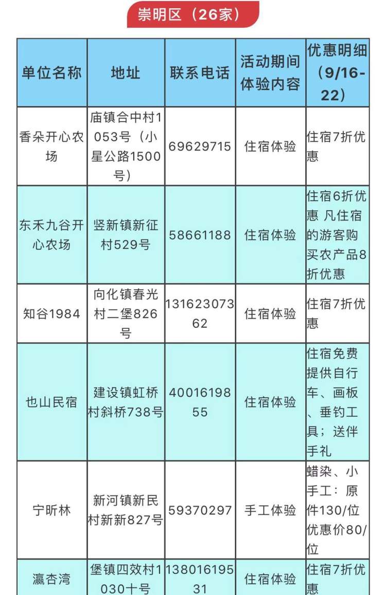 除了这3家五星级民宿,崇明还有其他民宿供选择,旅游节期间有住宿优惠。