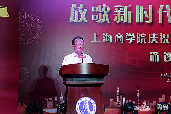 上海商学院党委书记沈大明在开场致辞中说到,中华民族经历了从站起来、富起来到强起来的历史性飞跃。无论是在中华民族历史上,还是在世界历史上,这都是一部感天动地的奋斗史诗。70年春华秋实,70年昂首阔步,我们的祖国正以一个大国的身份重新屹立于世界的东方。