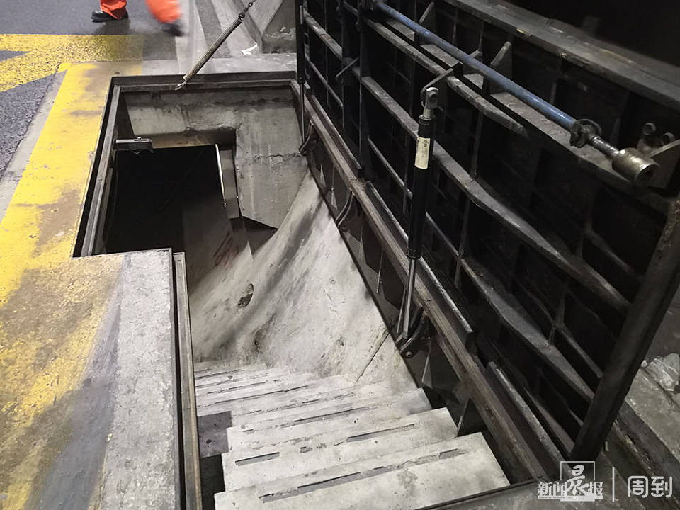 这些疏散楼梯的大门,设计非常巧妙,设置在道路一侧,与地面持平,但在隧道墙壁上会醒目地标示着“安全出口”和“逃生梯道”,一般人均可轻松打开疏散大门。