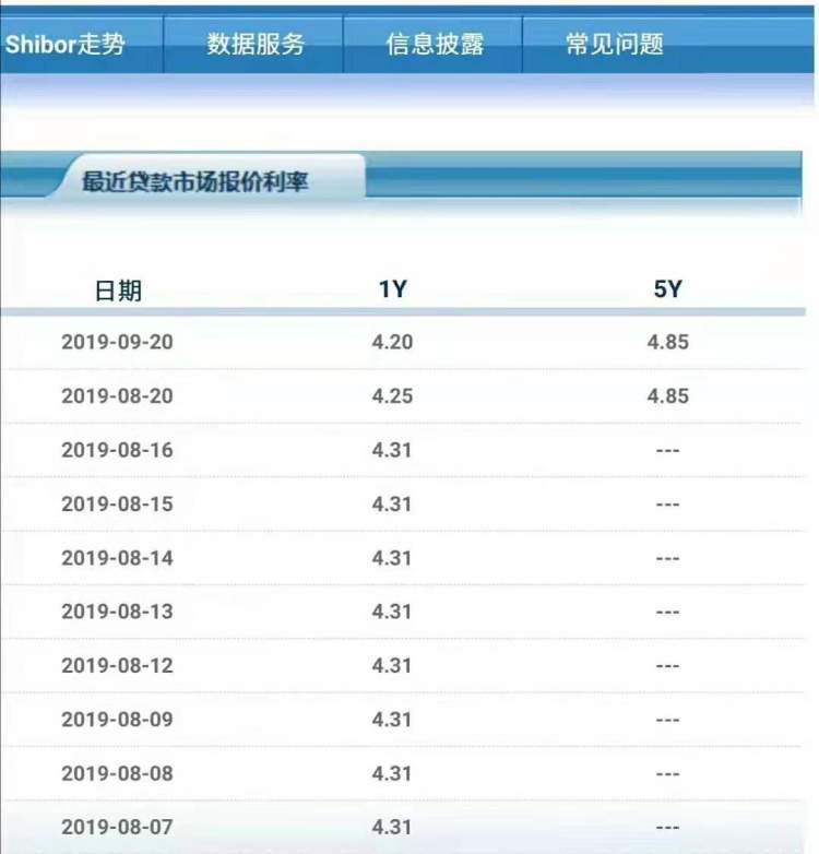 9月20日,新一期贷款市场报价利率公布。1年期LPR为4.2%,5年期以上LPR为4.85%。也就是说,1年期LPR下降5基点,连续第二次下降;5年期以上LPR没有变化。“5年期以上可能保持不变,这主要是考虑近期国家对房地产信贷的调控。”分析人士称。