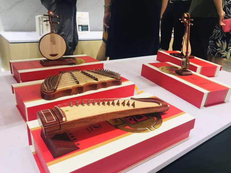 记者在现场看到,由上海民族乐器一厂带来的敦煌牌礼品版小乐器就很受欢迎,一套小乐器包含了古筝、二胡、琵琶等7种乐器,手指轻轻抚过还真的有乐声哦~