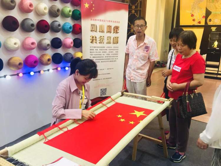 此外,恰逢新中国成立70周年之际,恒源祥的展位上还有小姐姐现场亲绣国旗,也是一道应景又亮丽的风景线。