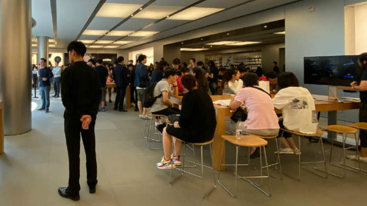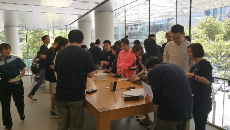上午10点,记者来到位于淮海中路上的苹果官方零售店(香港广场店),从店外看,这家苹果零售店并不是非常热闹——昔日苹果新品首发时店外大排长队的景象早已不复存在。