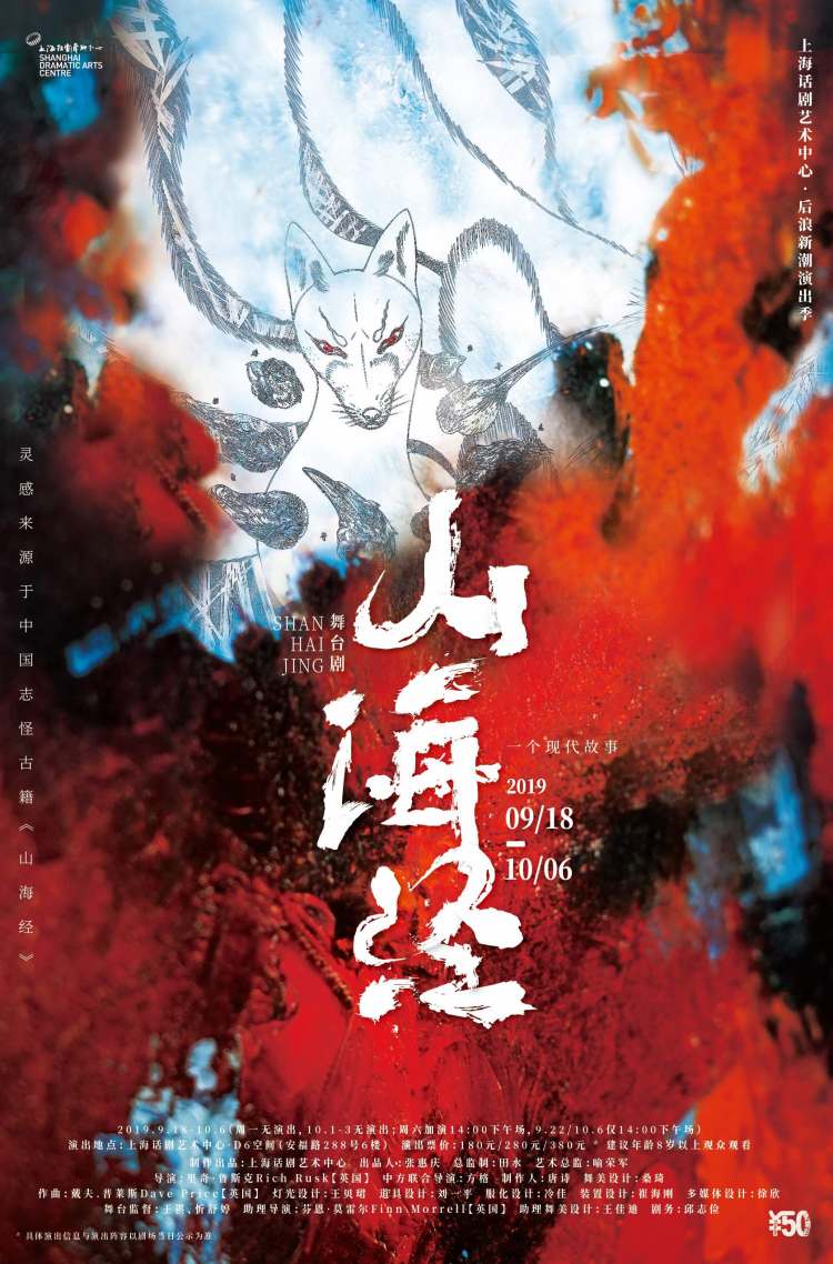 上海话剧艺术中心·后浪新潮演出季、2019ACT上海当代戏剧节参演剧目原创舞台剧《山海经》以中国志怪古籍为灵感,邀请英国导演团队,与上海话剧艺术中心演员、设计及技术团队共同创作舞台剧《山海经》,讲述一则现代故事:
