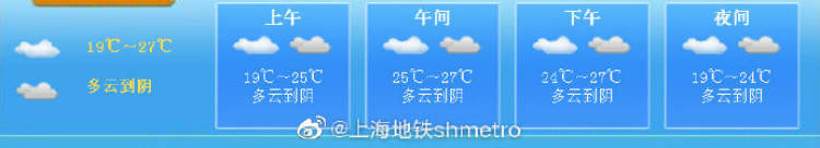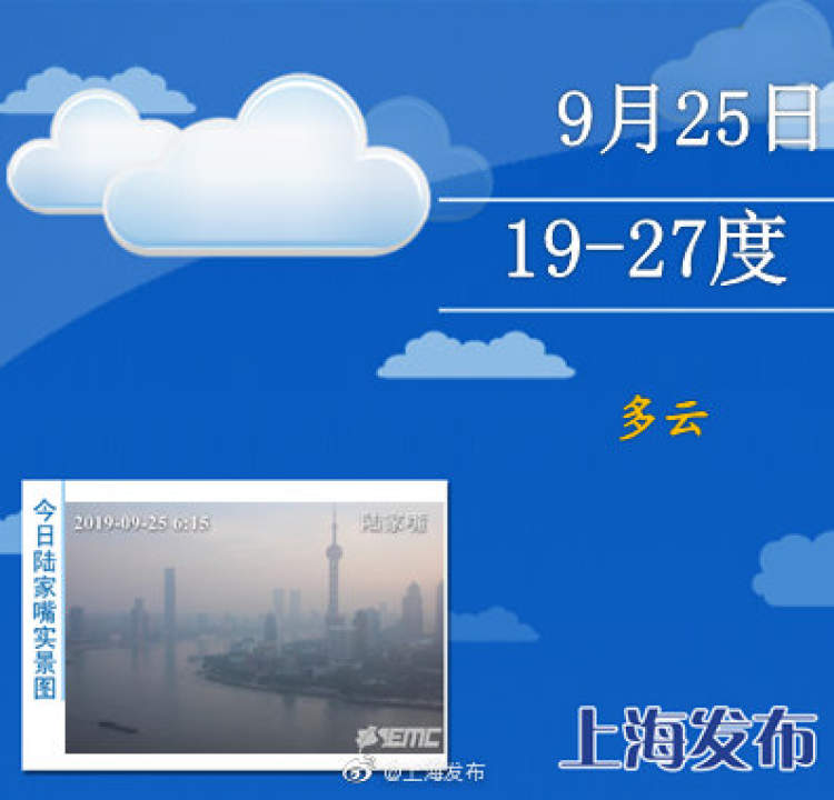 今天多云,19-27度 明起3天开启阵雨模式 周到君 2019-9-25 来源:周到上海 今天多云,最高温度27度,最低温度19度,凉爽宜人哦~明天多云到阴,局部地区有短时阵雨,最低温度20度。明起3天将迎来阵雨模式。昼夜温差还是很大,请及时调整着装,以防感冒。 来源:周到上海 作者:周到君 赞一个 (0)
