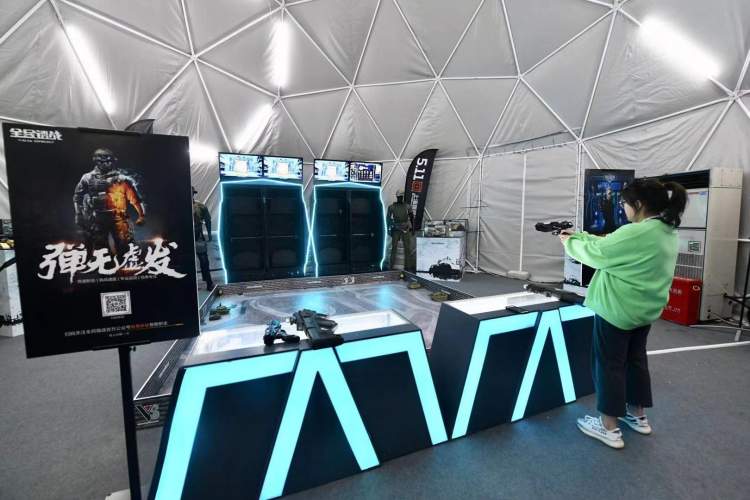 全民镭战智能射击一体机,利用了光学原理代替实弹发射,不但安全,其后期的计分等处理手段,也改变了传统射击的枯燥。现场还有坦克操控射击比赛等游戏。