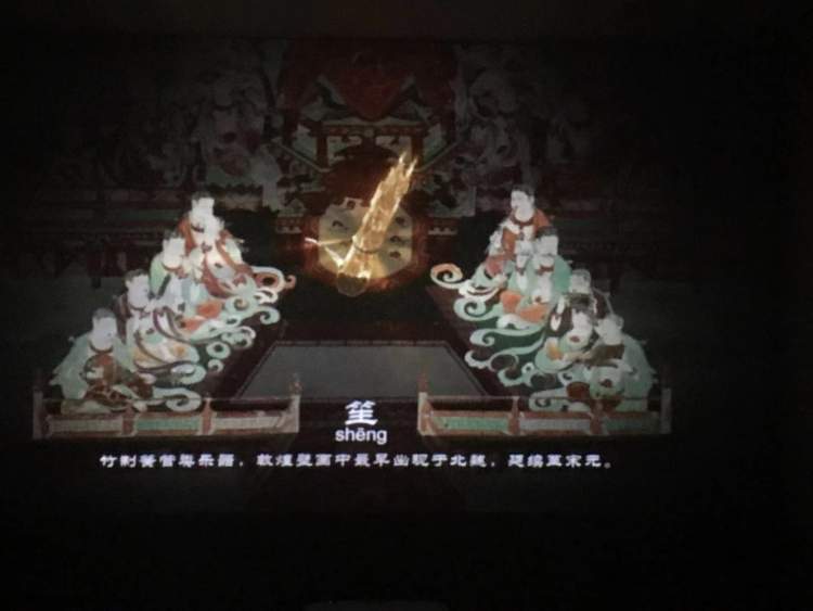 这是一款多媒体全息影像作品。多媒体技术唤醒了沉睡千年的敦煌壁画,让人在丰富的视觉感受中,学习到敦煌的乐舞知识。
