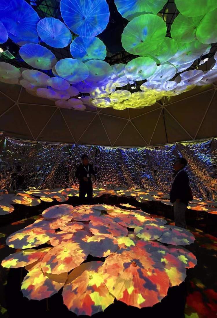 这是一场新媒体艺术展,不同颜色的空间,斑斓的艺术之眼装置,绝对是个打卡的好地方。