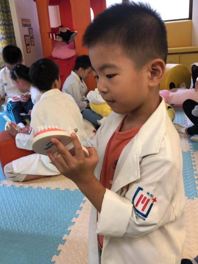 孙晨浩小朋友在此次活动中观察得很仔细,尤其对于所见事物的描写,如“像小勺子一样的放大镜” “像橡皮泥一样的材料”等,表述得十分生动形象,让一些平常小朋友们看着“有点害怕的”诊疗器械也变得有趣多了!
