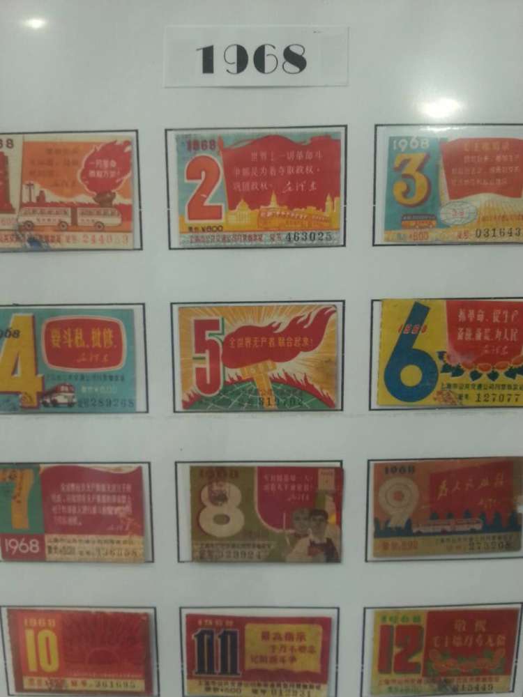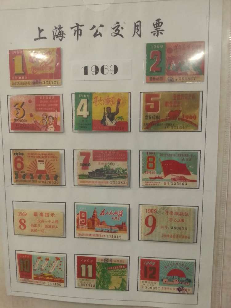 记者看到,这里陈列公交月票,从1966年开始一直到80年代,每一个月的公交月票都全部陈列出来了。其中有珍贵的错版公交月票。比如1969年8月的上海公交月票,第一版画面有错,随即改出了第二版,就造成了同一个月的月票居然有两个版本。