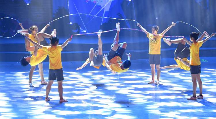 “沸腾时代”篇章中,市竞技体育训练管理中心带来的《绽放》,将艺术体操的技巧与中国舞的优美完美融合。宝山区体育局带来的《炫动青春》将街舞和跳绳的魅力展现得淋漓尽致。