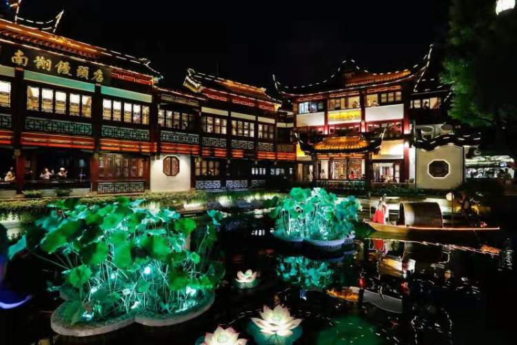 最近,豫园老城厢的“夜”开始变得活力四射。令人目不暇接的3D投影秀旁,是一场气势磅礴的鼓舞展示;九曲桥畔流光溢彩,一叶扁舟从荷花碧叶间缓缓而来,船头妙龄少女抱琴而坐,而你在池边雅座里品着一味香茗……