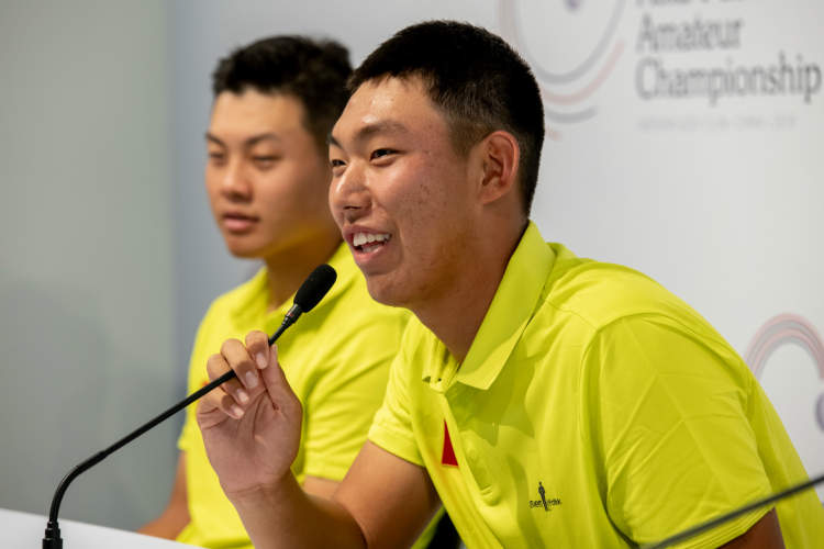 明天,亚太地区最高等级的业余比赛——亚太业余锦标赛将在上海佘山国际高尔夫俱乐部正式开杆。今天下午,中国内地球员林钰鑫、金博出席了赛前发布会,志在将冠军奖杯留在本土。