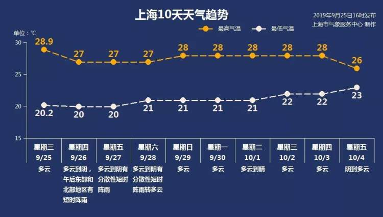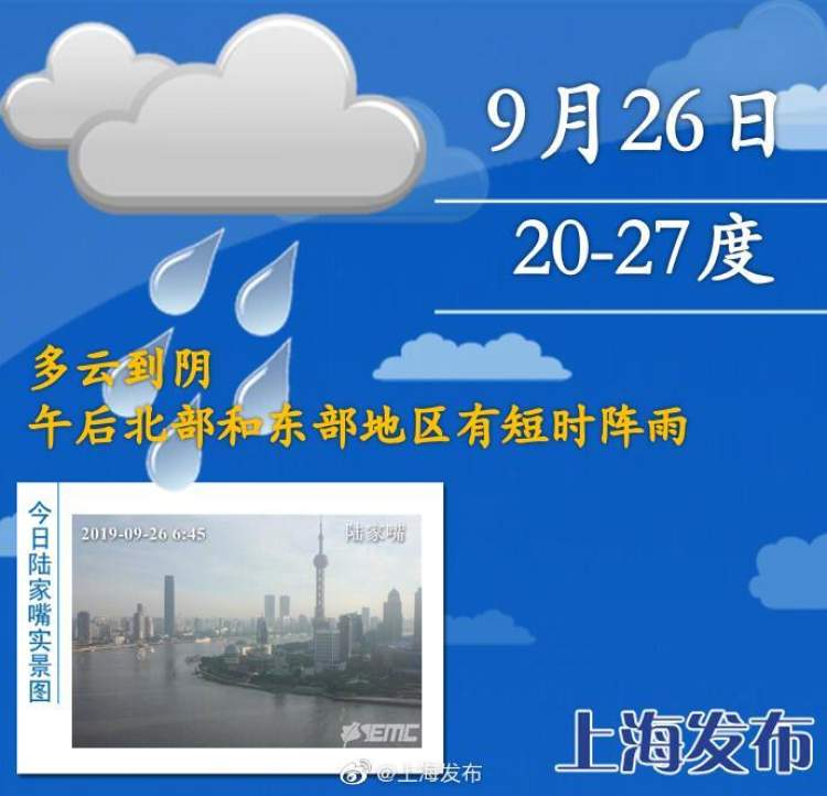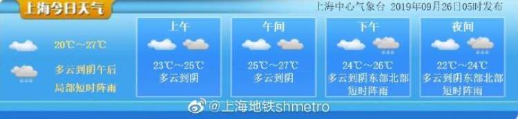 今天多云到阴有阵雨,早晚“凉凉”午后微热 一天之内过夏秋 周到君 2019-9-26 来源:周到上海 今天多云到阴,20-27度,今明午后局部地区有短时阵雨,未来两天将迎来阵雨模式。29日起,天气静好,将持续一段时间多云为主的好天气,最低气温21~22℃,最高气温27-28℃。近期的一天犹如过两季:早晨出门凉意十足,午后还稍微有点热,昼夜温差大,小伙伴早晚外出需注意添衣保暖,谨防感冒。 来源:周到上海 作者:周到君 赞一个 (0)