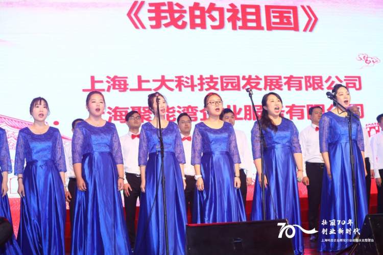 “一条大河,波浪宽……”熟悉的音乐响起,由上海上大科技园和上海聚能湾共同演绎的经典曲目《我的祖国》拉开了主题歌会的序幕。
