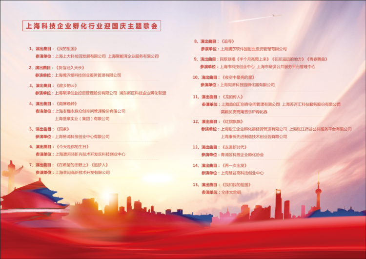 本次主题歌会由上海市科技创业中心主办,上海科技企业孵化协会、上海交通大学国家大学科技园和上海慧谷高科技创业中心共同承办,主题歌会的举办旨在进一步弘扬创新创业精神,展示创业服务人员的良好风采,激发全社会创新创业活力