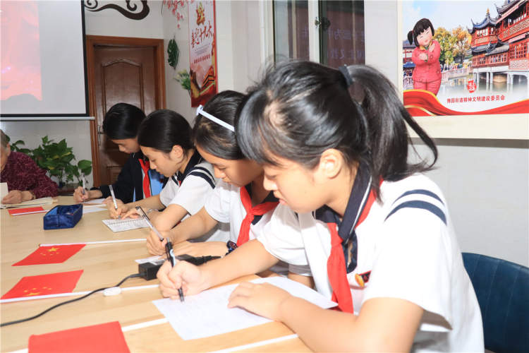 来自上海市民办立达中学初二年级雏鹰小组的同学们得知这个消息后,主动报名,来到淮海居民区党群服务站,倾听段奶奶讲述“三个爱”的故事。