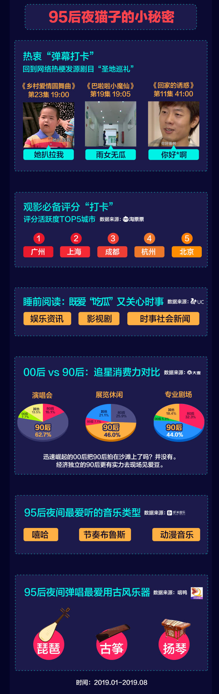 《95后夜猫子报告》显示,95后年轻人在夜间观影、追剧、看演出等文化消费领域表现十分活跃;南方城市的95后夜猫子在各项消费活动中表现尤其突出。