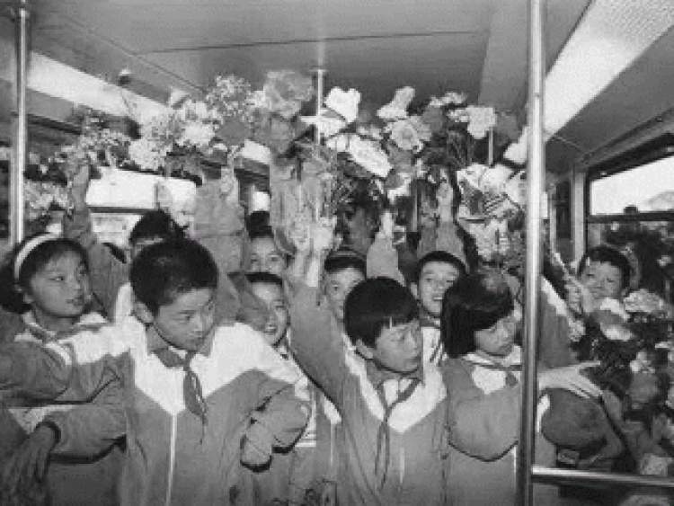 其实,当时只是通了单向的隧道,铺好钢轨和接触网后,用一列车来回跑,单程12分钟。而且控制列车间隔采用的是最原始的“电话闭塞法”,票务员手工进行卖票、撕票,但依旧吸引了大批市民前来乘坐。照片中是前来观摩的小学生。